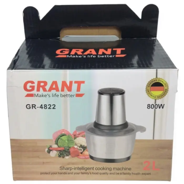 Блендер чоппер кухонный стационарный измельчитель с металлической чашей GRANT GR-4822