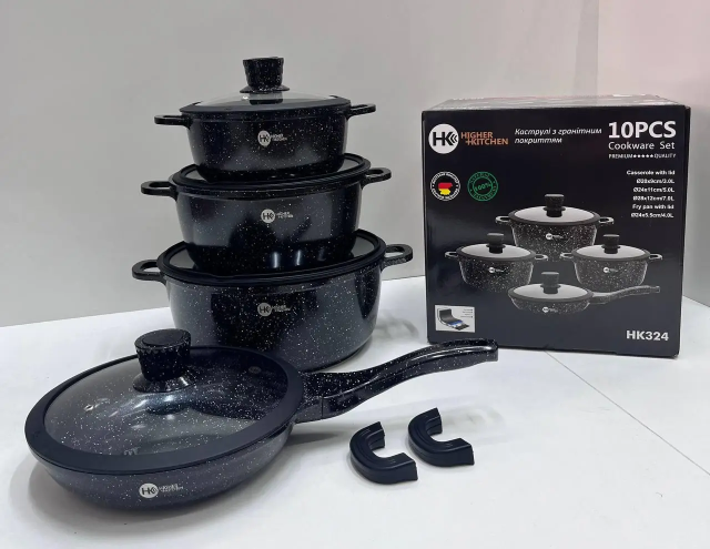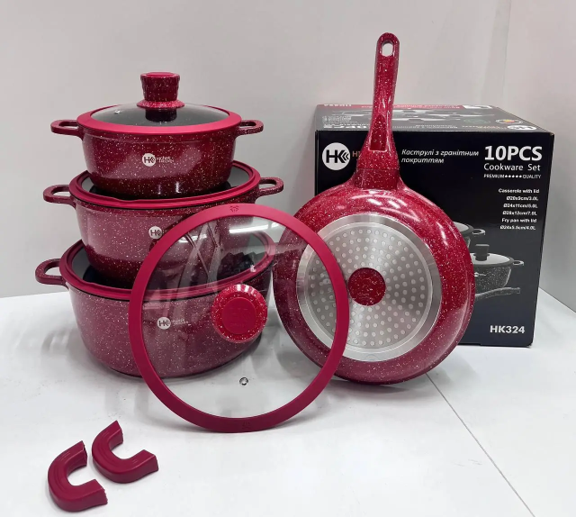 Посуда для кухни 10 предметов в наборе НК-324 для всех видов плит с антипригарным покрытием.