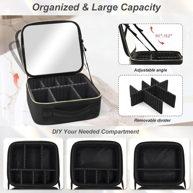 - Косметичка с зеркалом: вместительное отделение для косметики, большая полка для хранения кистей для макияжа и зеркало для макияжа с полным обзором позволяют удобно наносить макияж в любое время. Зеркальная косметичка – идеальный выбор для путешествия или деловой поездки.