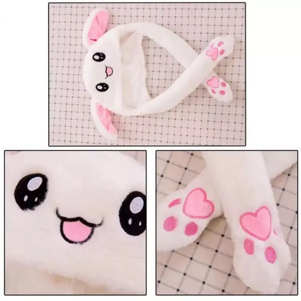 Она поможет защитить от мороза и голову, и уши с щечками, и шею, и руки. Очень круто двигает ушами, когда вы нажимаете на лапки, ушки на шапке хлопают и вы приводите в движение то одно ухо то другое. Шапка с двигающимися ушками — это настоящий хит продаж этой зимы!
