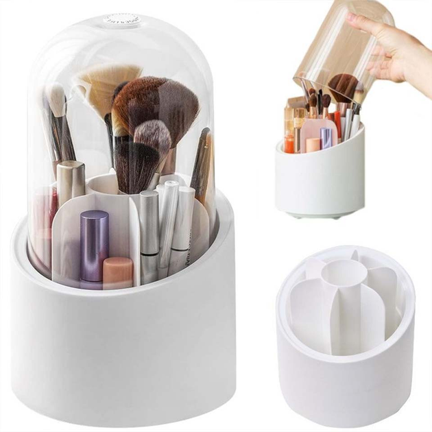 Органайзер для хранения косметики имеет прозрачный купол, который защитит от пыли. А благодаря красивому и стильному дизайну, кейс для косметики станет не только практичным, но и креативным элементом интерьера комнаты. Органайзер косметический вращается на 360 градусов, что позволит быстро найти любой предмет.