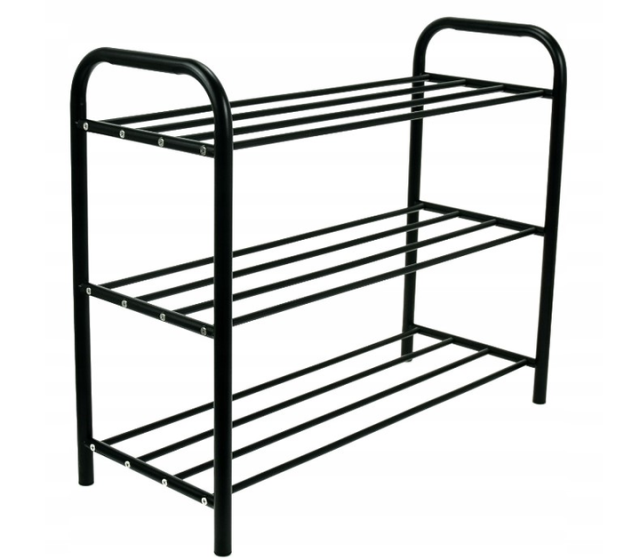 Практична трирівнева металева полиця призначена для зберігання взуття. Відповідна ширина та висота полиць дозволяють зберігати на них будь-яке взуття. На полиці можна розмістити близько 8-12 пар взуття.