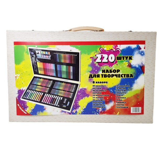 Такий набір для малювання це дійсно шикарний подарунок, який зберігає в арсеналі тільки якісні предмети для творчості. А так як все це багатство зберігається в кейсі, то нічого не розгубиться і якщо господарем кейса буде дитина - він привчитися до порядку. Але головне! Цей набір допоможе дитині розкрити свої творчі здібності.