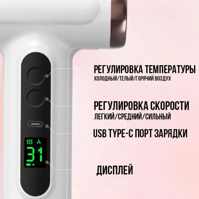 Акумуляторний бездротовий фен RT-305 — це сучасний пристрій для сушіння та укладання волосся в будь-яких умовах. Оснащений потужною літієвою батареєю ємністю 15000 мАг, фен забезпечує бездротову роботу, а порт Type-C підтримує швидку зарядку.