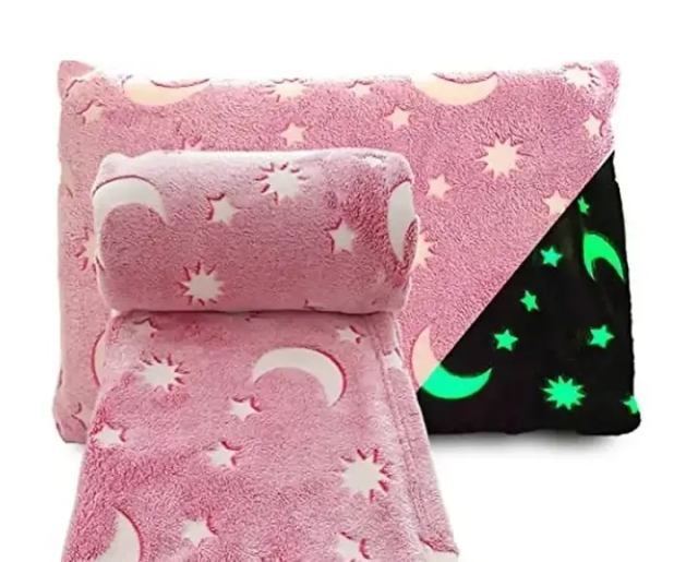 Виконує функцію нічника, дитині не страшно засинати під заспокійливе сяйво зірок. Після зірки поступово меркнуть. Зірки, що світяться, на пледі працюють як накопичувач - у світлий час накопичують частинки світла, а при настанні темряви поступово його віддають