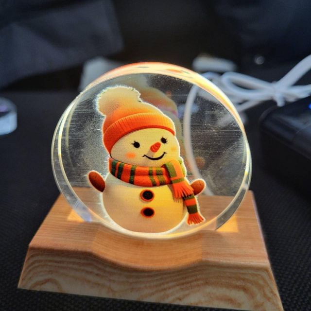 Креативний 3D-нічник у вигляді прозорої кулі з барвистими зображеннями та LED-підсвічуванням. Він створює затишну атмосферу та може використовуватись як декоративний елемент або нічна лампа. Дерев'яна підставка надає виробу стильного та натурального вигляду.