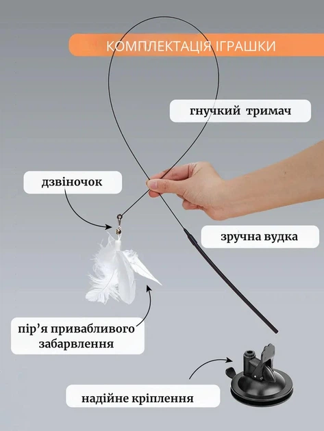 Ця інтерактивна іграшка-дражнилка на присосці — ідеальна іграшка для активного дозвілля вашого улюбленця. Виготовлена з гіпоалергенних матеріалів, вона безпечна для котів будь-якого віку. Гнучка вудка з яскравим пір’ям і дзвіночком стимулює мисливські інстинкти, покращує реакцію, розвиває м’язи та підвищує витривалість.