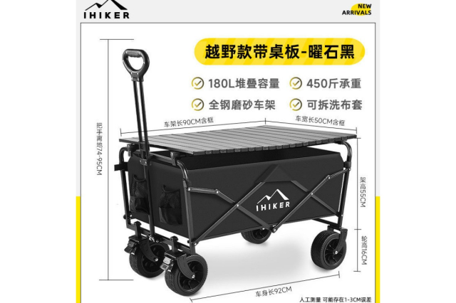 Цей складаний візок — справжня знахідка для поціновувачів кемпінгу та активного відпочинку. Він поєднує в собі функціональність вантажної платформи та зручного столика.