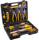 Головки шестигранні 1/4" 9 шт, викрутки 4 шт, викрутки прецизійні 2 шт, тримач для біт, подовжувач, перехідник 1/4", ключі шестигранні 9 шт, рулетка, плоскогубці, щипці подовжені прямі, бокорези, розвідний ключ, ніж, молоток, ізоляційна стрічка, викруткові біти 1/4" 29 шт, елементи кріплення 85 шт.