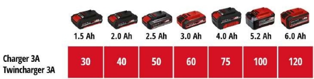Стартовий комплект 18V 2x 4,0Ah Twincharger Kit Einhell Power-X-Change - це універсальний набір лінійки Power X-Change system, який складається з подвійного зарядного пристрою і 2-х шт. акумуляторних батарей Power X-Change Li-ion 18V 4,0Аh. У літій-іонних елементів відсутній ефект саморозряду батареї, параметри батареї постійно контролюються електронікою, а адаптовані цикли зарядки продовжують термін служби батареї. Прогумований міцний корпус акумуляторної батареї захищає її від ударів, і робить придатними для роботи у важких умовах. Ви можете використовувати Power X-Change акумулятор для живлення більше 50 різних інструментів лінійки Power X-Change system, де для роботи інструменту небхідно два акумулятора (36 В = 2 х 18 В).