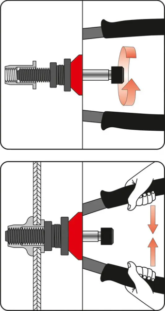 Заклепочник дворучний різьбовий YT-36128 застосовується в кріпильних роботах для міцного з'єднання матеріалів за допомогою різьбових заклепок М5, М6, М8, М10, М12. Виготовлений з високоякісних матеріалів. Використання різьбової заклепки, на відміну від звичайної, дозволяє міцно скріпити тонколистові матеріали, замикаючи їх між собою. Продумана конструкція пістолета для різьбових заклепок забезпечить легке та швидке виконання операцій. Металева ручка з резиновими накладками для зручного використання.