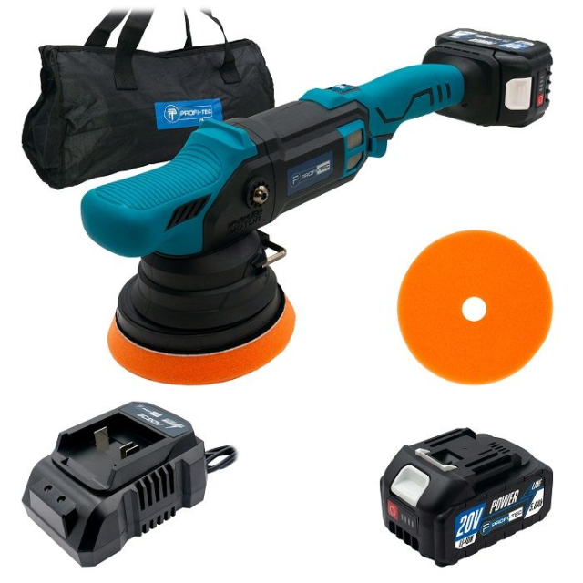 Акумуляторна ексцентрикова полірувальна машина PROFI-TEC PPM-1520CDA – потужний інструмент, розрахований на професійне застосування в автомайстернях та виробничих цехах, призначенний для обробки лакофарбового покриття, видалення дефектів, голограм, наліту та формування глянцевого ефекту.