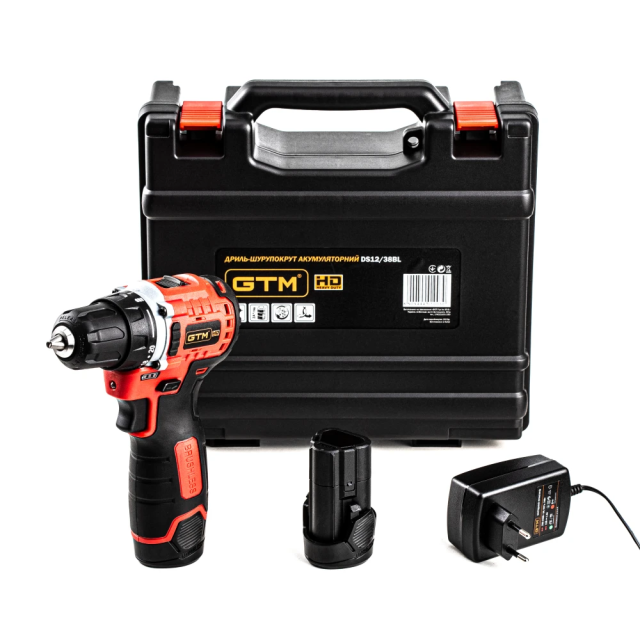 Акумуляторний безщітковий шурупокрут GTM DS12/38BL + 2 АКБ і ЗП у кейсі (DS12/38BL)
