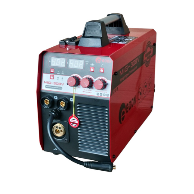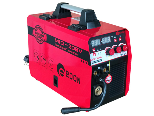 Напівавтомат Edon MIG-308V – високопродуктивний та надійний зварювальний апарат зі збільшеними показниками потужності. Дозволяє працювати дротом у середовищі газу, без нього та електродами. Edon MIG-308V розроблений за сучасними інверторними технологіями, перевагою яких є: низьке енергоспоживання, захист від перепадів у мережі, надійні силові транзистори, відсутність прилипання електрода, стабільну та м'яку дугу. Завдяки цьому ви отримуєте відмінний рівний шов та приємну роботу з апаратом. Укомплектований знімним єврорукавом 3м. Напівавтомат має надійний металевий механізм подачі дроту. Функції гарячий старт, антизалипання електрода і форсаж дуги зроблять роботу простою навіть для зварювальника-початківця. Максимальний розмір котушки завантаження дроту дорівнює 5кг. Обладнано кнопкою заправки дроту без подачі газу. Зміна полярності для роботи з дротом без газу розташована на передній панелі. Ця модель сміливо витримує інтенсивні навантаження на виробництвах. Зварювальний напівавтомат Edon MIG-308V – перевірений зварювальниками та часом апарат, який забезпечить приємний процес роботи, високу надійність та високоякісний зварювальний шов.