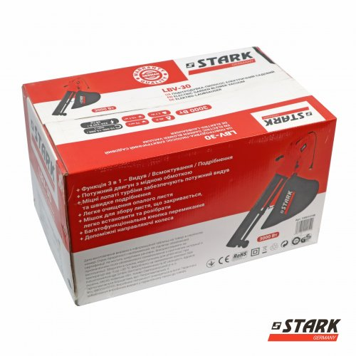 Повітродувка-пилосос електричний STARK LBV-30 – потужний садовий інструмент для збирання листя, скошеної трави, дрібних гілок тощо. Модель здатна працювати у 2 режимах: як повітродувка для здування садового сміття і як садовий пилосос для сбору та подрібнення сміття.