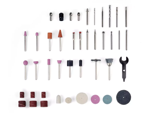 Комплектація включає набір аксесуарів із 117 предметів, що робить цей інструмент ідеальним рішенням для найрізноманітніших завдань у майстерні або вдома. Також у комплект входить тримач пристрою з отворами для настінного кріплення.