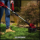 - Головка двигуна може повертатися на +/- 180 °, щоб ви могли скошувати уздовж вертикальних поверхонь і країв газону