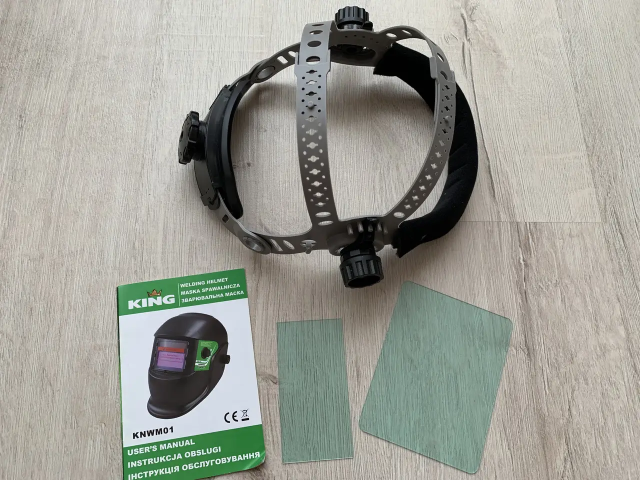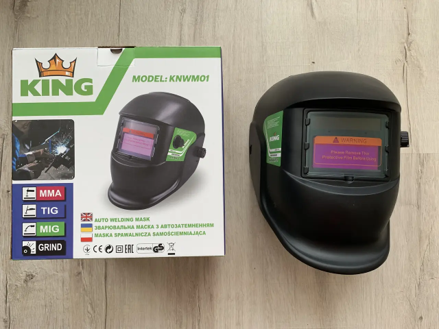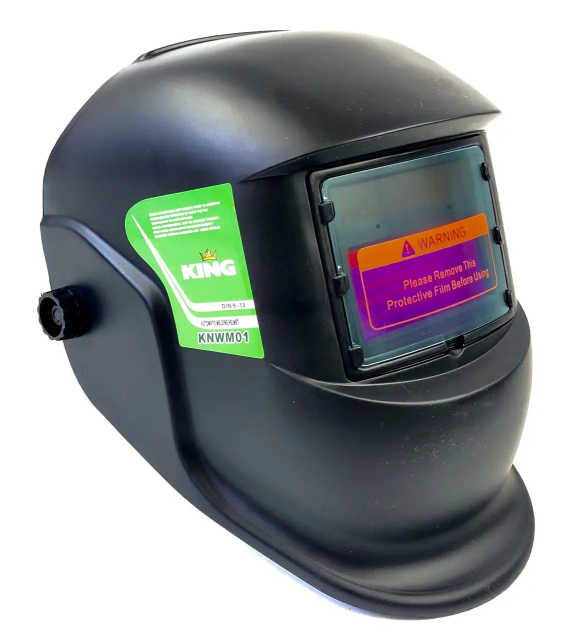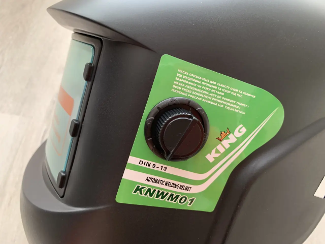 Зварювальна маска хамелеон King KNWM01 - розроблена на основі самих останніх досягнень сучасної електроніки, має регулювання ступеня затемнення від 9 до 13 DIN, живлення здійснюється від вбудованих сонячних елементів — вам не потрібно турбуватися про своєчасної заміни батарейок.