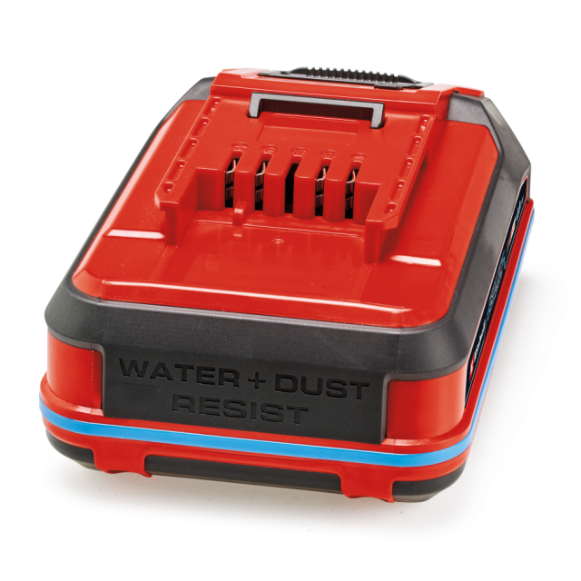 Акумулятор Einhell 18 V 4.0 Ah SEALED Power X-Change PLUS є частиною багатофункціональної системи акумуляторів Power X-Change від Einhell. Універсальні акумулятори Power X-Change забезпечують потужність і витривалість для всіх бездротових електроінструментів у всій сімействі продуктів, що охоплюють сектор садів і майстерень. Особливість SEALED акумулятора? Його герметичний корпус означає, що він водонепроникний і пилонепроникний відповідно до класу захисту IP57. Завдяки інтегрованому захисту від короткого замикання через додатковий контакт на гнізді акумулятора система датчиків виявляє контакт з водою та вимикає електроніку. Це гарантує, що навіть якщо акумулятор повністю занурений у воду, він може продовжувати використовуватися, коли він висохне. Його літій-іонні елементи останнього покоління забезпечують на 100% більше потужності для максимальної продуктивності в усіх сферах застосування, а також на 13% більш компактний дизайн і 10% зниження ваги. Крім того, наша технологія PLUS забезпечує додаткову потужність для інтенсивних завдань. Акумулятор не страждає від ефекту пам'яті або саморозряду, як більшість акумуляторів, що означає, що він може забезпечити постійну високу потужність. Контрольована технологічним процесом система активного керування акумулятором ABS постійно контролює параметри акумулятора за допомогою вбудованого мікропроцесора. Це забезпечує максимальну безпеку, оптимальну продуктивність пристрою, максимальний час роботи та максимальний термін служби. Ви можете перевірити поточний стан заряду за допомогою 3-ступінчастого світлодіодного індикатора. Конструкція корпусу робить його стійким до корозії та механічних впливів. Гумове покриття надає акумулятору високий захист від ударів і забезпечує гарне захоплення. Завдяки поглибленій ручці його можна легко зняти з усіх пристроїв.