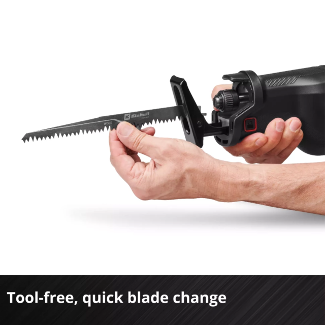 Акумуляторна універсальна пилка Einhell Professional постачається з двома пилковими полотнами: одним для дерева та одним для металу. Це дозволяє пилці різати різні матеріали. Пильні полотна можна змінювати без інструментів, а також повертати на 180° для встановлення.