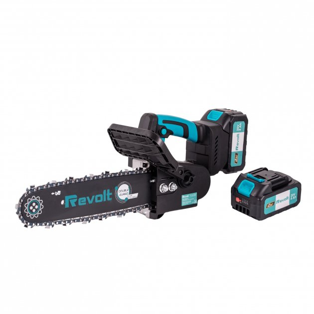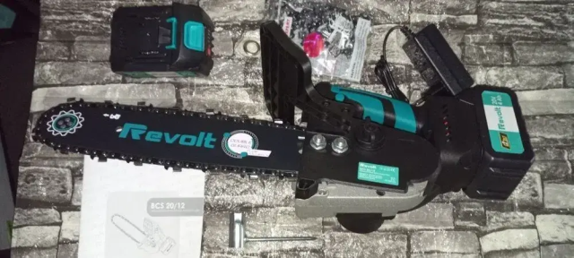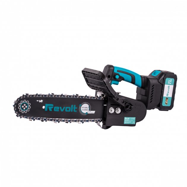Акумуляторна ланцюгова пила Revolt BCS 20/12 — це портативний інструмент для обрізки дерев та дощок. Пила має легку вагу та ергономічну форму, що забезпечує комфортну роботу. Гнучкий захисний кожух забезпечує додаткову безпеку. Підходить для використання в важкодоступних місцях при роботі в саду або в домашньому господарстві. Ідеальний помічник для точної обрізки дерев, чагарників, а також може виконати більш важкі завдання, які виконують бензопилами.