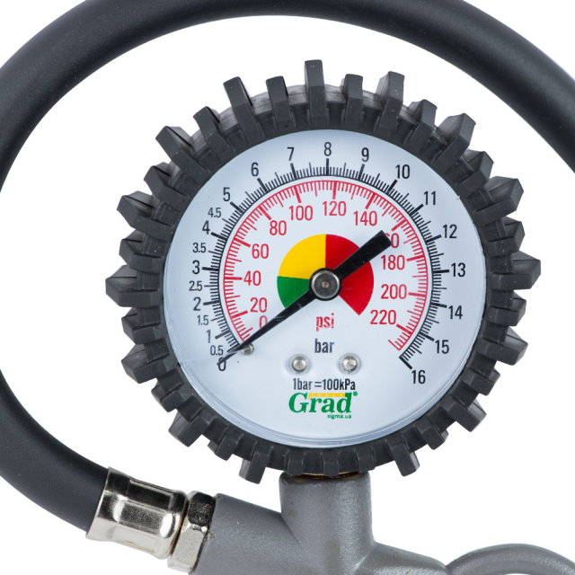 Пневмопістолет для підкачки 85-200л/хв, 12бар GRAD (6832235) застосовується для підкачки шин автомобілів. Зручний гнучкий шланг дозволяє виконувати операції в важкодоступних місцях. Вбудований в конструкцію манометр дозволяє проводити моніторинг роботи пристрою і перевіряти рівень робочого тиску в будь-який робочий момент.