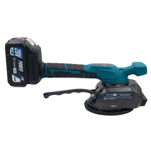 Акумуляторна вібраційна присоска для укладання плитки PROFI-TEC VMC-Universal - це багатофункціональний відмінний інструмент для укладання, вирівнювання з вібрацією та перенесення плитки. Спеціально розроблена для маніпуляцій та підйому плитки з шорсткою поверхнею або з невеликим рельєфом, не залишає плям на плитці. Використовується для перенесення та встановлення підлогової та настінної плитки, що значно підвищує ефективність роботи.