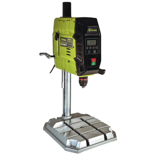 Свердлильний верстат TITAN PDP8013 - спеціальне обладнання, що використовується для механічної обробки отворів деталей та заготовок із твердих матеріалів (сталь, кольорові метали, чавун, нержавіюча сталь, пластмаси тощо). Відмінний верстат для професійної майстерні чи побутового використання.