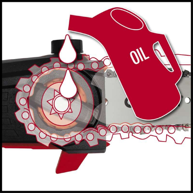 - Масляний бак для автоматичного змащення ланцюга з індикацією "Мін" - "Макс"