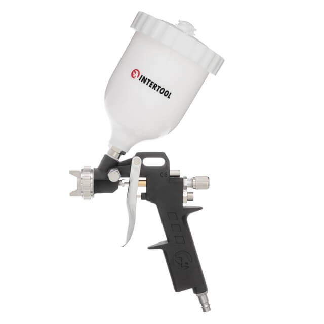 Фарбопульт пневматичний INTERTOOL PT-0210 виготовлений з використанням технології НР (High Pressure — високий тиск за малої витрати повітря). Даний фарбопульт комплектується верхнім пластиковим бачком об’ємом 600 мл. Розмір форсунки складає 1,5 мм, а витрата повітря 130-190 л/хв. Робочий тиск сягає 5 атм. Фарбопульт INTERTOOL PT-0210 оптимально підходить для проведення фарбувальних робіт, для яких не потрібне ідеальне нанесення матеріалу на поверхню, але важлива швидкість і площа покриття.