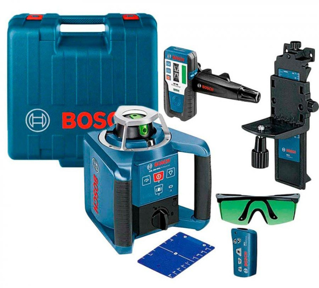 Ротаційний лазерний нівелір BOSCH GRL 300 HVG SET Professional - ротаційний лазерний нівелір із зеленим променем, що дає дуже чітку лінію, зручну для внутрішніх робіт. Робочий діапазон нівеліру BOSCH GRL 300 HVG SET Professional із приймачем складає 300 м (діаметр). Точність вимірів у нівелірі BOSCH GRL 300 HVG SET Professional має похибку не більше ±0,1 мм/м. Клас захисту IP 54 дозволяє використовувати нівелір BOSCH GRL 300 HVG SET Professional на будмайданчиках.
