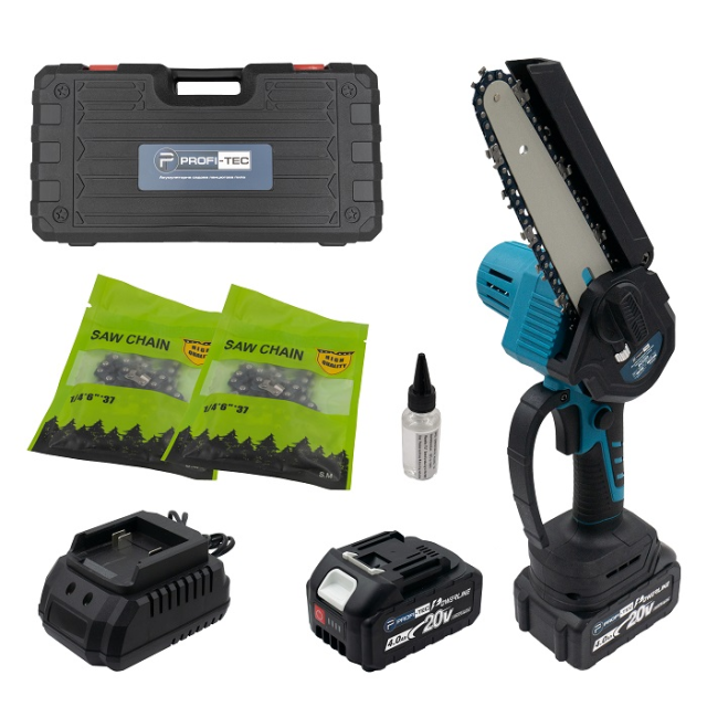 Акумуляторна ручна ланцюгова пила PROFI-TEC BCS250 – потужний та компактний інструмент, призначений для обрізання дерев та гілок, та невеликих дерев’яних конструкцій. Завдяки невеликим розмірам нею можна керувати однією рукою та досягати важкодоступних місць.