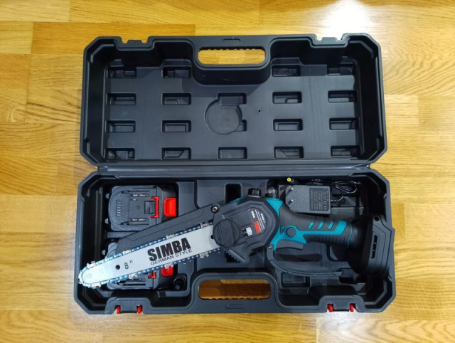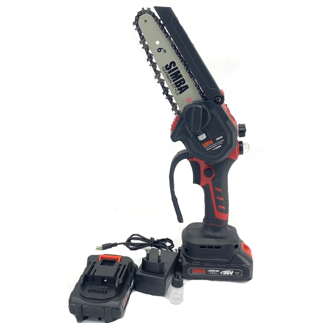 Пила ланцюгова акумуляторна Simba SA-002 36V + Подача масла, шина 6" - це легка та зручна пила, яка ідеально підходить для обрізання гілок, розпилювання дров та інших невеликих робіт. Її потужний двигун 36V забезпечує швидке та ефективне різання, а автоматична подача масла гарантує змащення шини та ланцюга для кращої продуктивності та довговічності.