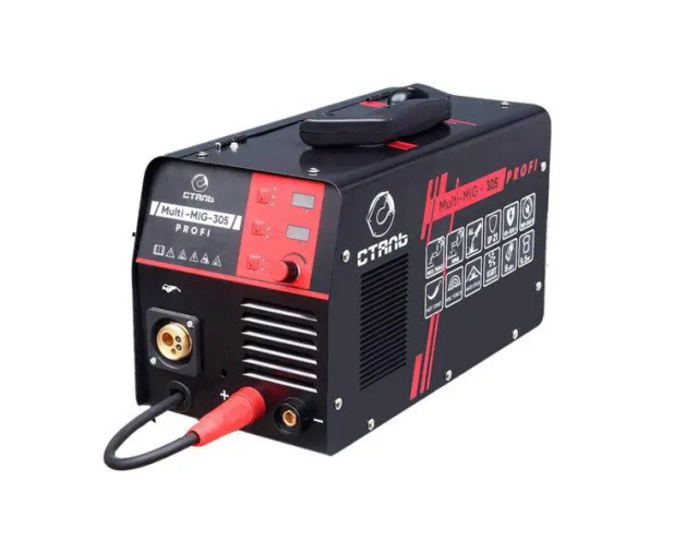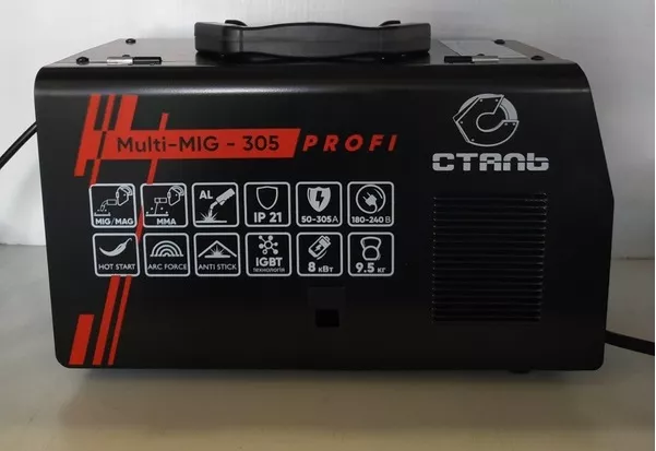Зварювальний інвертор Сталь MULTI-MIG-305 PROFI — це надійний апарат високої якості, який використовується для різного роду зварювальних робіт, як професіоналами своєї справи, так і любителями. Зварювальний струм даної моделі становить 50-305 А, а максимальна потужність - 8 кВт. Агрегат виготовлений на сучасному обладнанні з високої якості комплектуючих з урахуванням останніх тенденцій в будівництві інструментів. Завдяки застосуванню інверторної технології MULTI-MIG-305 PROF має компактні розміри та достатньо скромну вагу.
