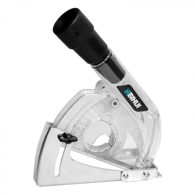 Захисний кожух BIHUI з пиловідведенням для КШМ призначений для різання. Виготовляється із міцного прозорого ABS пластику для гарної видимості лінії різу. Дозволяє працювати без пилу з болгарками, що мають діаметр диска 115 мм або 125 мм. Кожух оснащений спеціальним патрубком, що дозволяє підключити будівельний пилосос. Відмінно підходить для різання. Захисний кожух BIHUI використовується спільно з кутовими шліфувальними машинами для захисту оператора від уламків диска та частинок оброблюваного матеріалу під час шліфування та пиловідведення. Кріплення кожуха до КШМ здійснюється за допомогою перехідників діаметром 38-50 мм, які постачаються в комплекті. Проставні кільця забезпечують надійне кріплення кожуха на шийці кутових шліфувальних машин різних виробників. Кожух виготовлений з міцного ABS пластику, стійкого до шламу, каменів та пилу. Для підключення шланга системи видалення пилу кожух оснащений перехідником.