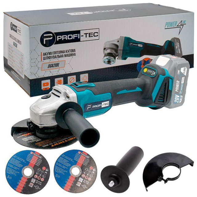 Акумуляторна кутова шліфувальна машина PROFI-TEC DGA20BL – потужний та зручний пристрій, призначений для обрізання, шліфування та зачистки виробів виготовлених з різних матеріалів (камінь, бетон, цегла, метал) та використовується при виконанні будівельних, монтажних та оздоблювальних робіт.