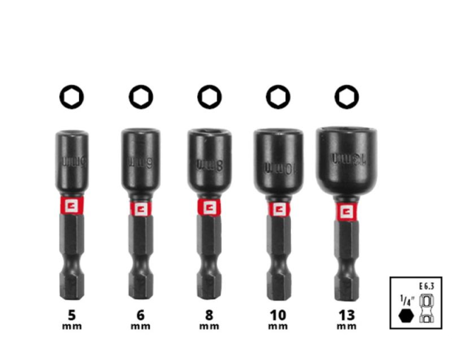 хвостовиком E 6.3 5 ударостійких головок (5-13 мм) під шестигранник, CV 1x