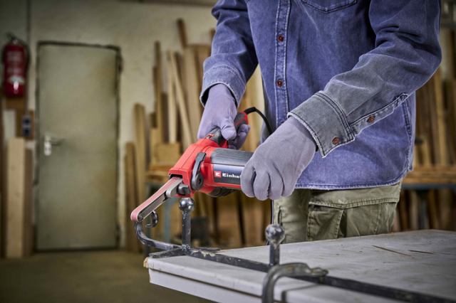 Стрічковий напилок Einhell TC-BF 500 E — це потужний і ефективний інструмент потужністю 500 Вт для шліфування, запилення та видалення задирок на плоских поверхнях і у важкодоступних місцях. Завдяки своїй шліфувальній напрямної шириною 13 мм і довжиною 457 мм він ідеально підходить для деталей, виготовлених з металу та дерева. Міцний корпус шліфувального кронштейна з міцного металу забезпечує довговічність і низький рівень вібрації. Для більш трудомісткої роботи зручний та легкий стрічковий напилок має фіксатор безперервної роботи.