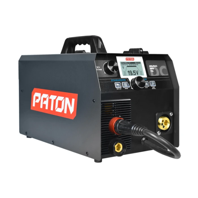 Цифровий інверторний напівавтомат PATON StandardMIG-250 – це апарат однокорпусного типу виконання, призначений для напівавтоматичного зварювання (НА «MIG/MAG»), ручного дугового зварювання (РДС «MMA»), аргонодугового зварювання (АРГ «TIG») постійним струмом в середовищі захисних газів і сумішей. В апараті StandardMIG-250 реалізований повністю цифровий спосіб управління, за рахунок чого забезпечуються його багатофункціональність і широкі можливості в точному налаштуванні режимів зварювання. Номінальний струм до 250А дає можливість працювати будь-якими електродами діаметром від 1,6 мм до 6 мм (легкоплавкі) і суцільним зварювальним дротом діаметром від 0,6 мм до 1,2 мм. Окремий закритий відсік для зварювального дроту підвищує його захист від пилу та інших забруднень.