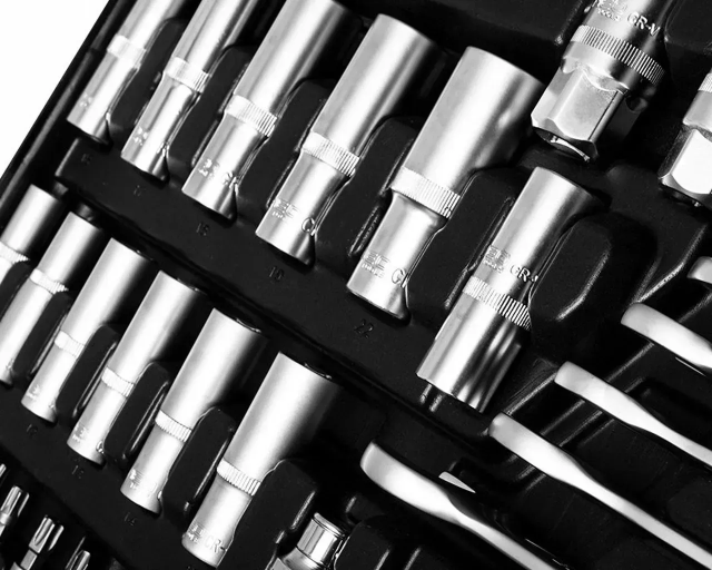 - Набір особливо багатий на головки та насадки з широким діапазоном розмірів.