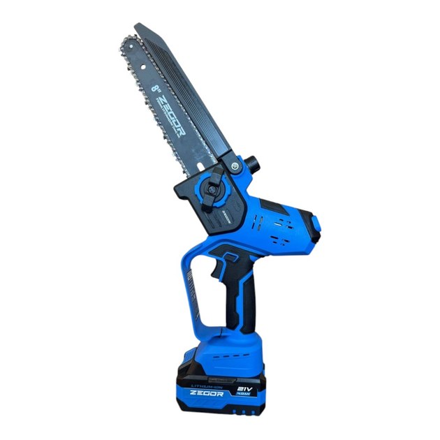 ZEGOR CSMJ-21BL-8 — компактна та потужна акумуляторна пилка з безщітковим двигуном, ідеально підходить для обрізання дерев, заготівлі дров, будівельних та садових робіт. Завдяки шині довжиною 203мм інструмент поєднує високу продуктивність із зручністю використання.