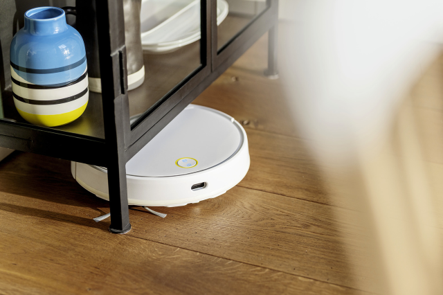 Вивільняє час для улюблених занять: інтелектуальний робот-пилосос RCV 3 бере на себе всю турботу про прибирання підлог. Після увімкнення він самостійно систематично очищає як тверді покриття для підлоги, так і килими з коротким ворсом. Сухе сміття, що змітається обертовою щіткою, і бічною щіткою, що прибираж по краях, всмоктується апаратом і направляється у вбудований сміттєзбірник. За необхідності апарат RCV 3 може здійснювати і вологе прибирання. У разі зниження заряду акумулятора він здійснює його проміжний підзаряд, а після закінчення роботи завжди повертається до своєї базової станції. За допомогою мобільного додатку робот-пилосос RCV 3 можна відправити в початкову подорож, під час якої його лідарна система навігації автоматично складає план приміщень. Для кожного приміщення можна задати індивідуальні параметри прибирання, зокрема, визначити ділянки сухого і вологого прибирання, а також зони, які не повинні очищатися апаратом. Датчики перепаду висот унеможливлюють падіння робота-пилососа зі сходів. Апарат RCV 3 можна легко увімкнути кнопкою на корпусі або подати йому команду початку прибирання зі смартфона. У додатку можна також попередньо скласти індивідуальний графік прибирання. Інформація про те, що в роботу апарата потрібне втручання його власника, у багатьох ситуаціях видається в мовній формі.