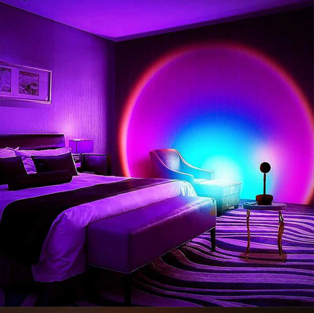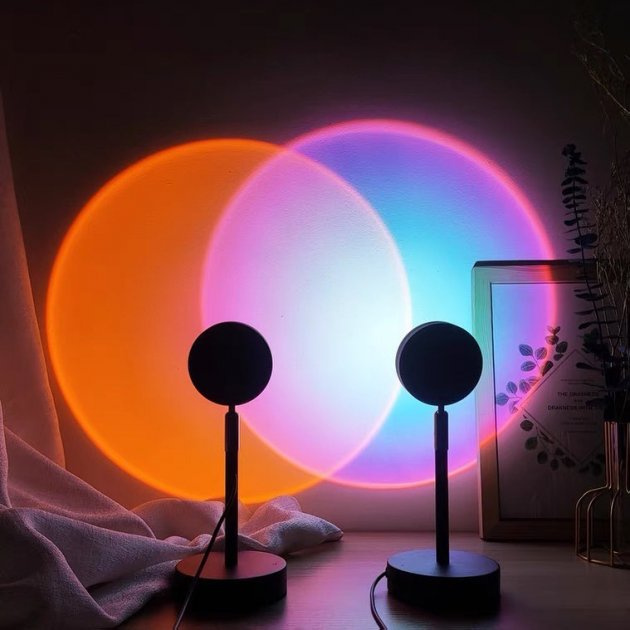Если вы хотите создать теплую и современную атмосферу, для селфи эффект солнца RGB для мероприятия – прекрасное решение для освещения. Она вносит солнечный свет в комнату, в которой мало света, тем самым создает ощущение уюта и тепла. Настольная лампа с проекцией заката идеально впишется в гостиной, спальне, будет хорошим реквизитом для фотосессий.