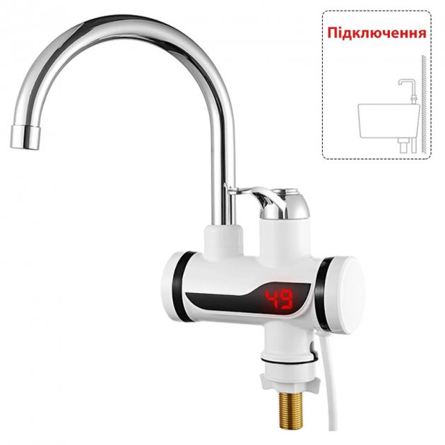 Электрический проточный водонагреватель кран-бойлер с дисплеем 3 кВт нижнее подключение
