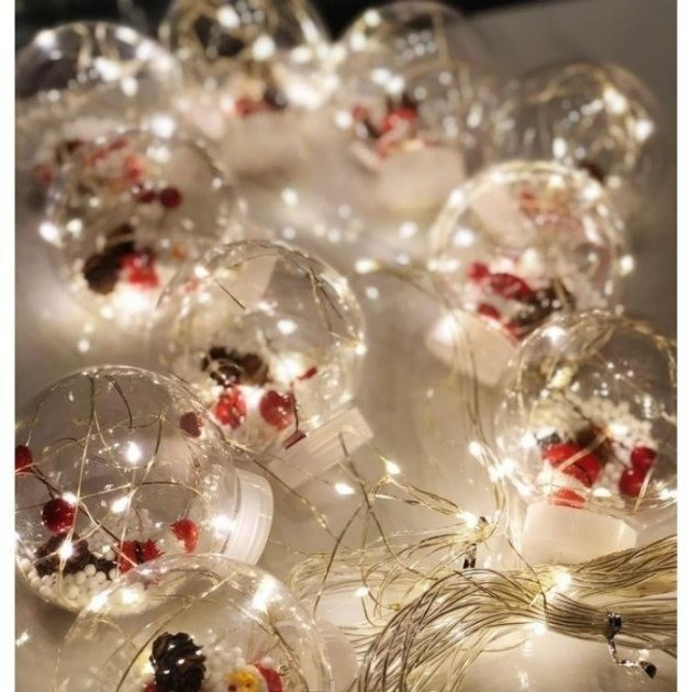 Светодиодная новогодняя гирлянда-штора шары Дед Мороз с наполнением 3.0м 10 шаров 200 LED