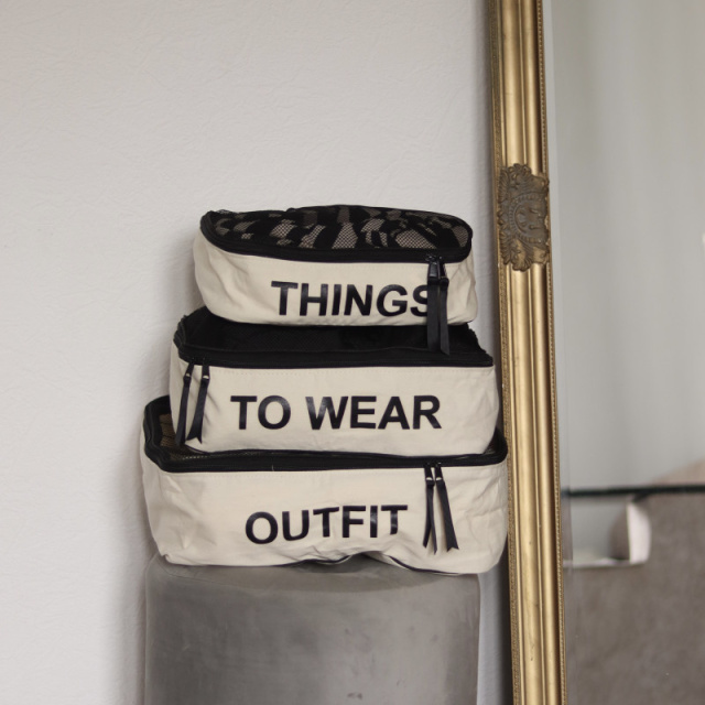 НАЛОЖЕННЫЙ ПЛАТЕЖ ПО ПРЕДОПЛАТЕ 100ГРН Сделано в Украине. Стильный набор из 3 сумок разного размера для организации вещей в чемодане. Классный вариант для подарка. Пошиты из хлопка, сверху - прочная сетка для удобства - видно какие вещи лежат в сумочке. Сделано в Украине. Размеры: things - 30*20*10 см, to wear - 35*25*12 см, outfit - 40*30*15 см.
