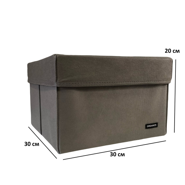 Коробка ORGANIZE для хранения вещей L с крышкой - 30x30x20 см (серый)