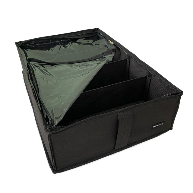 Текстильный кофр для хранения вещей на 4 отдела 50*35*14 см (со съемными перегородками) ORGANIZE (черный)