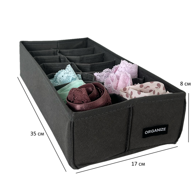 UA MarketОдесаBestoreТовары и услугиОрганайзеры для бельяСерыеОрганайзер ORGANIZE на 14 ячеек для трусов или носков 35х17х8 см (серый)