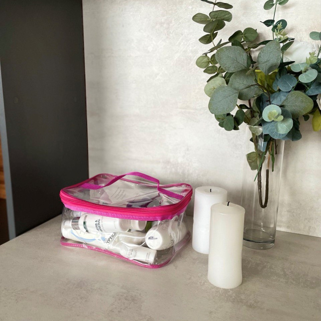 Прозрачная косметичка из плотного силикона L ORGANIZE (розовый)